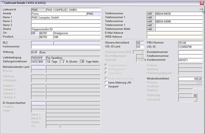 In der Maske Lieferanten-Details (zu erreichen über Adressen/Lieferanten oder über das Menü „Seite“ in einer anderen Lieferantenmaske) können weitere Daten zum Lieferanten erfasst werden: