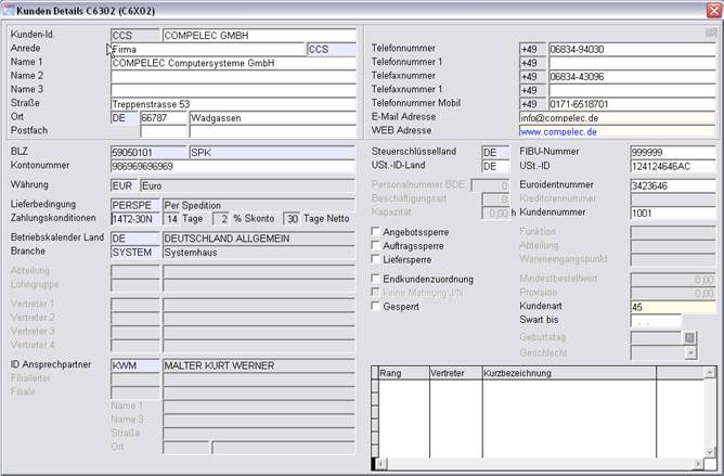 In der Maske Kunden-Details (zu erreichen über Adressen/Kunden/Details oder über das Menü „Seite“ in einer anderen Kundenmaske) können weitere Daten zum Kunden erfasst werden: