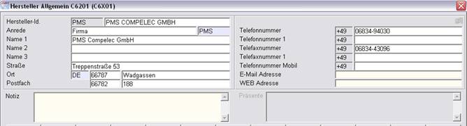 Die Hersteller werden unter dem Menüpunkt „Adressen/Hersteller/Adressen“ angelegt.