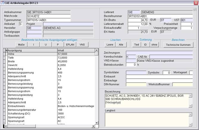 Weitere Informationen siehe auch Punkt 1.1 „CAE Artikelmaske“
