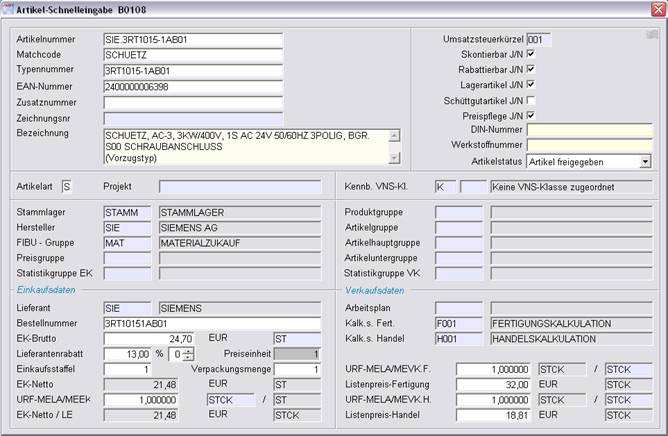 4.2 B0108 Artikel-Schnelleingabe