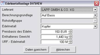 Edelmetallanlage (D05NEW) können angegeben werden: