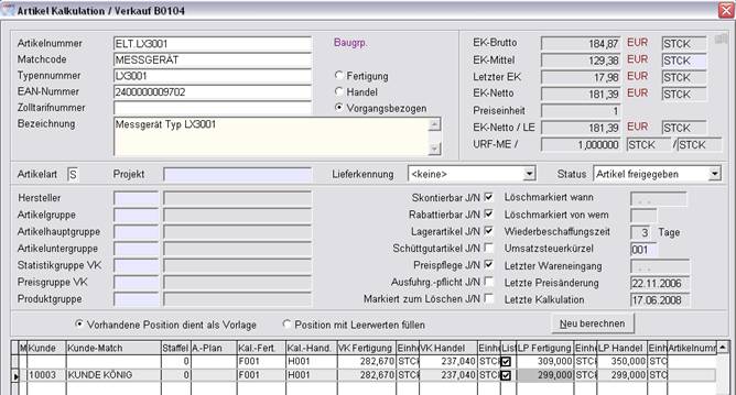 Damit ist es nun möglich, Artikelstamm-Kalkulationen und Listenpreise kundenbezogen und für Staffelpreise zu generieren.