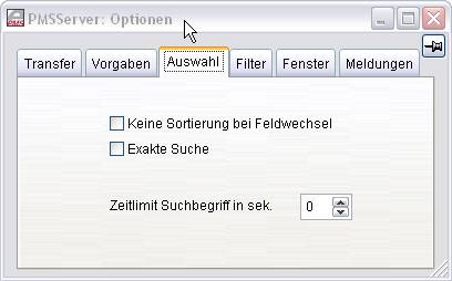 Im Menüpunkt Extras können über das Untermenü Optionen Einstellungen zur Konfiguration des PMS-Servers vorgenommen werden.