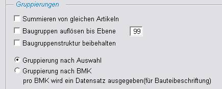 Hauptmenü und im Menü der Stücklistenbearbeitung aufrufbar.