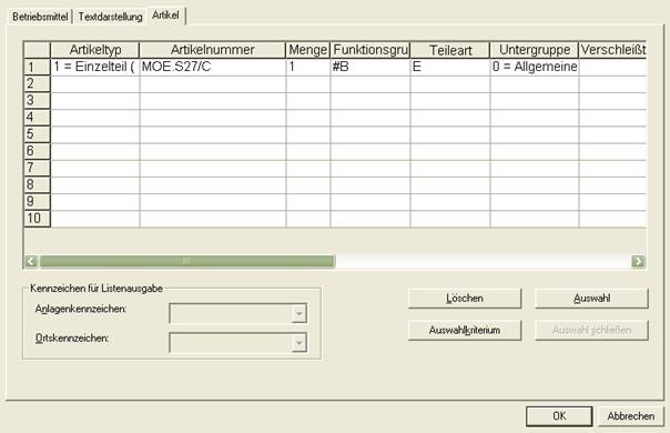 SYSID = 0, Leer sind BMK, Funktionsgruppe (FKTGR) und Teileart (TART). Treffen diese Werte zu, so nimmt PMS32 automatisch an, dass die eingefügte Position eine Bedarfsposition ist.