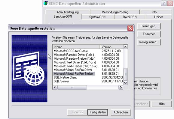 4.1 bis 4.4, mit Ausnahme der Installation des VFP-ODBC-Treibers und der