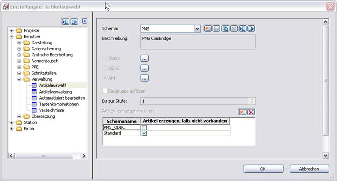 Dort müssen aus dem Installationsverzeichnis für das PMS-Addon die Konfigurationen als XML-Dateien importiert werden. Es ist eine Konfigurationsdatei für die Stücklistenkopfdaten und eine für die Stücklistenpositionen zu laden.