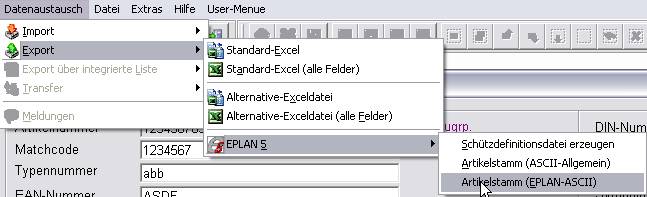 Um bereits bestehende Artikeldaten aus PMS32 nach EPLAN Electric P8 übernehmen zu können steht ein Im-und Export zur Verfügung: