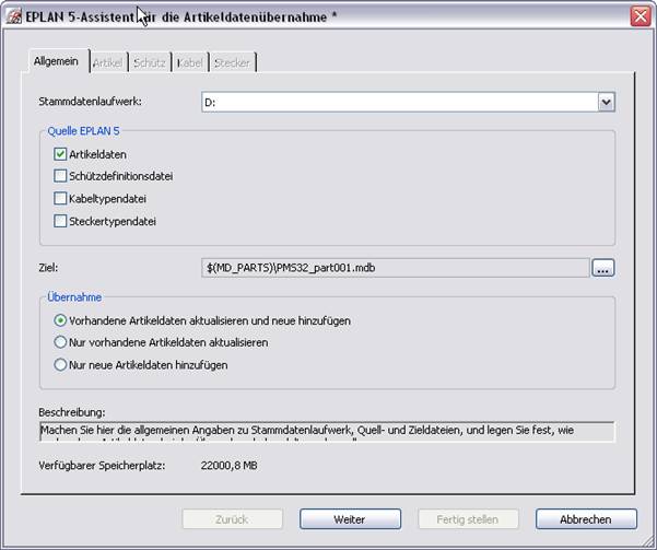 Projekt à EPLAN5 / fluidPLAN Datenübernahme à Artikel