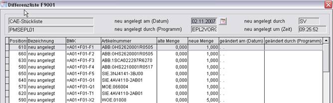 die schon in der CAE-Stückliste Stammartikel sind. Alle anderen Positionen