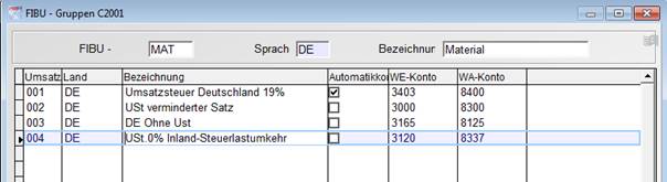 Nach der Neuanlage eines Steuerschlüssels finden Sie dieses in allen Fibugruppen als neue Position wieder.