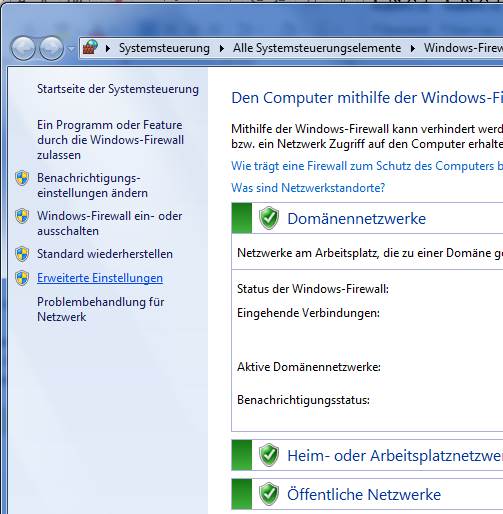 Ich habe einmal eine Einstellung der Firewall aufgezeichnet, jedoch kann das Aussehen des Abbilds in einer anderen Version von Windows abweichend sein!