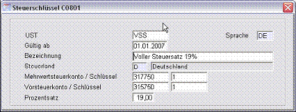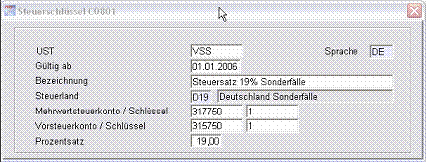 z.B. auf den 01.01.2006, das Steuerland auf D19 und der Prozentsatz auf 19%