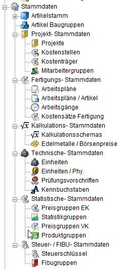 In diesem Bereich finden Sie alle Daten die sich auf den Artikelstamm beziehen.