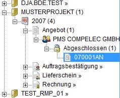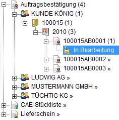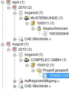 Wie in Kundensicht, jedoch mit der Struktur von sechs Bereichen: Jahr, Vorgangsart, Kunde, Projekt, Vorgangsstatus, Vorgangsnummer