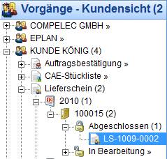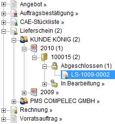 Dieser Menüpunkt klappt den gewählten Bereich bis zum letzen, letzten Eintrag auf und startet die zugeordnete PMS-Funktion. (Im Bild startet die Lieferung LIEF-0911-00…)