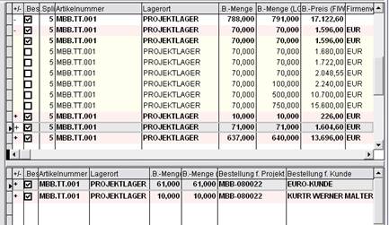 Ab Version 1.0.04 wurden die Funktionen im Bereich Bestellwesen / Einkauf erweitert. In den Stammdaten der Bestellpositionen können jetzt kunden- bzw. projektspezifische Einkaufsdaten hinterlegt werden. Dazu müssen Sie zwei Felder in die Datenraster der Masken B0102 und C6103 hinzufügen, um Kunden bzw. Projekte auswählen zu können. Am Beispiel der Maske B0102:
