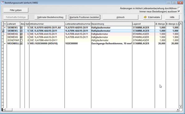 3.2 Neue Bestellvorschlagsmaske D4002