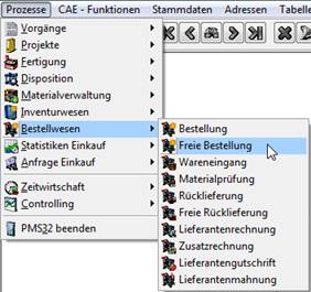 Dieser Menüpunkt klappt den gewählten Bereich bis zum ersten, letzten Eintrag auf und startet die zugeordnete PMS-Funktion. (Im Bild startet die Bestellung 0900006B)
