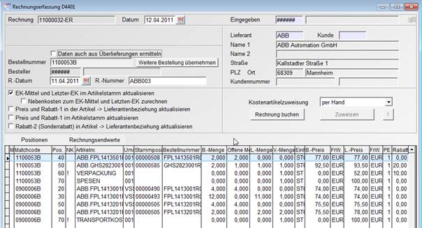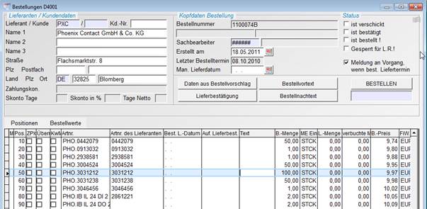 3.5 Bestellmasken mit Reitertechnik für Kopfdaten und