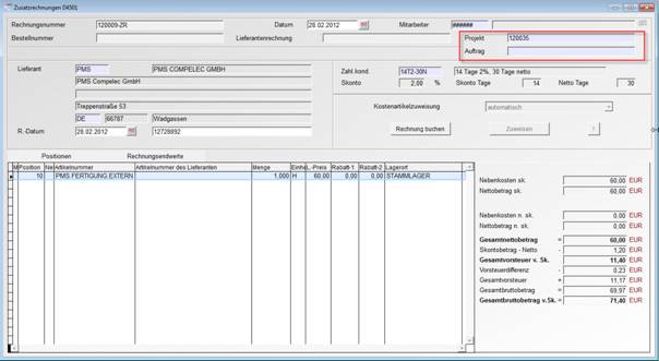 3.9 Zusatzrechnungen mit direktem Projekt – und Auftragsbezug
