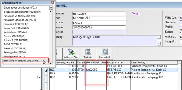 4.4 Alternativer Arbeitsplan für Baugruppenpositionen