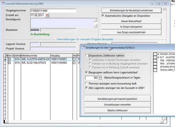 6.2 Manuelle Materialanforderung / Lagermodullauf
