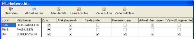 Die Rechte werden unabhängig voneinander vergeben, bitte verwenden Sie sinnvolle Zusammenstellungen! Die Rechteverwaltung kann NUR dann in PMS32-DATA geöffnet werden, wenn PMS32-DATA aus PMS32