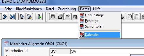 Zur Ressourcenplanung kommen noch weitere ‚neue‘ Informationen zur Ressource. Über die Maske Mitarbeiter C6401 (Ressource) kann dem Mitarbeiter ein Kalender hinterlegt werden.