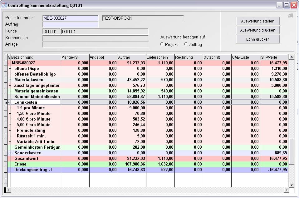 auf einer Zeile können Detailinformationen abgerufen werden, wie oben zu sehen „Lohnkosten“.