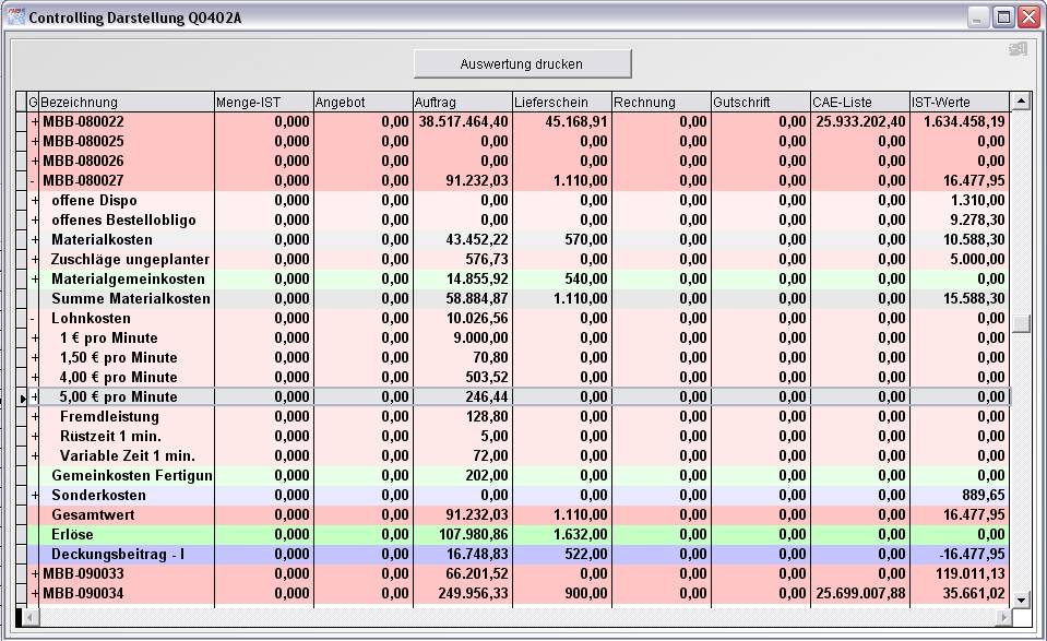 Auch die Detailansicht kann wie im Einzelcontrolling durch F3 angezeigt bzw.