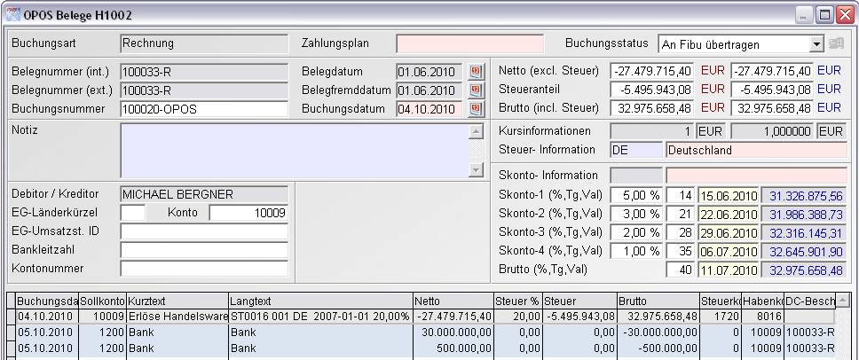 (int.), Interne Belegnummer, hier E10.NUMMER – Vorgangsnummer