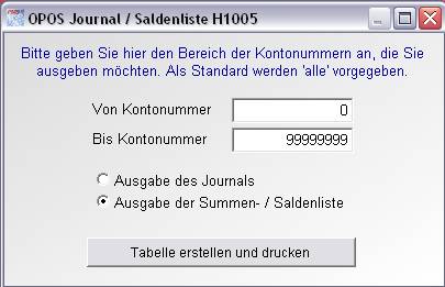 Journals bzw. einer Kontenliste aus der OPOS auf Papier